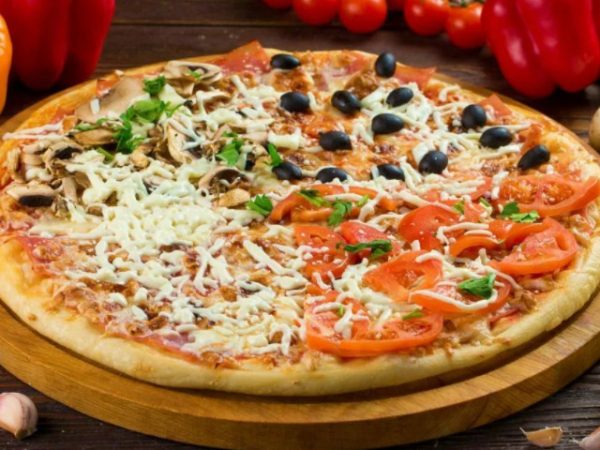Фирменный соус, шампиньоны, пепперони, курица, бекон, сыр моцарелла
