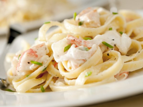 Лапша, вареные креветки, сливочный соус, петрушка, сыр пармезан / 270 гр.