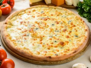 Соус фирменный, шампиньоны, лук, ветчина, салями, пепперони, бекон, соус барбекю, маслины, помидор, маринованный огурец, моцарелла, тесто/850 гр