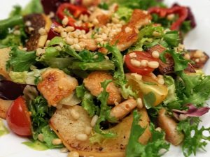 Лист салата, куриное филе, апельсин, сыр фета, соус ренч, семена чиа / 230 гр /