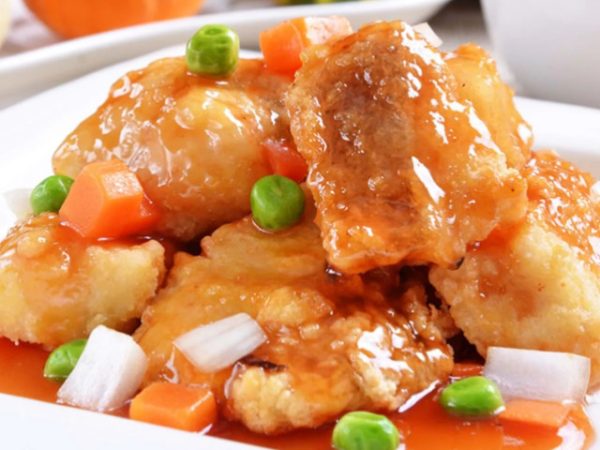 Тилапия, болгарский перец, красный лук, имбирь, морковь, кисло-сладкий соус, кунжут, зеленый лук /370 гр/