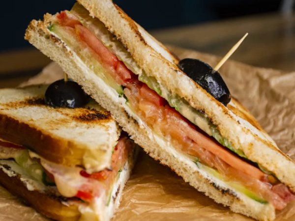 Хлеб для сендвичей, слабосоленный лосось, соус рэнч, лист салата, огурец/210гр